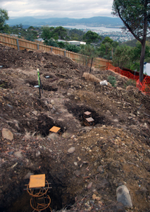 The strip footings shown formed up below will have blocks laid on them. This will be the only area where the house structure will touch the ground. The walls are mainly designed to retain the soil above and around the house from slipping, and then the house ending up in the backyard of our neighbours directly below us on Hakea Drive!