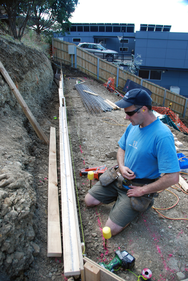Day 32: Damien working on the initial stages of the formwork for the upper path.