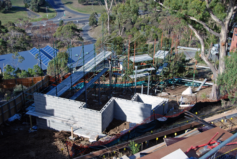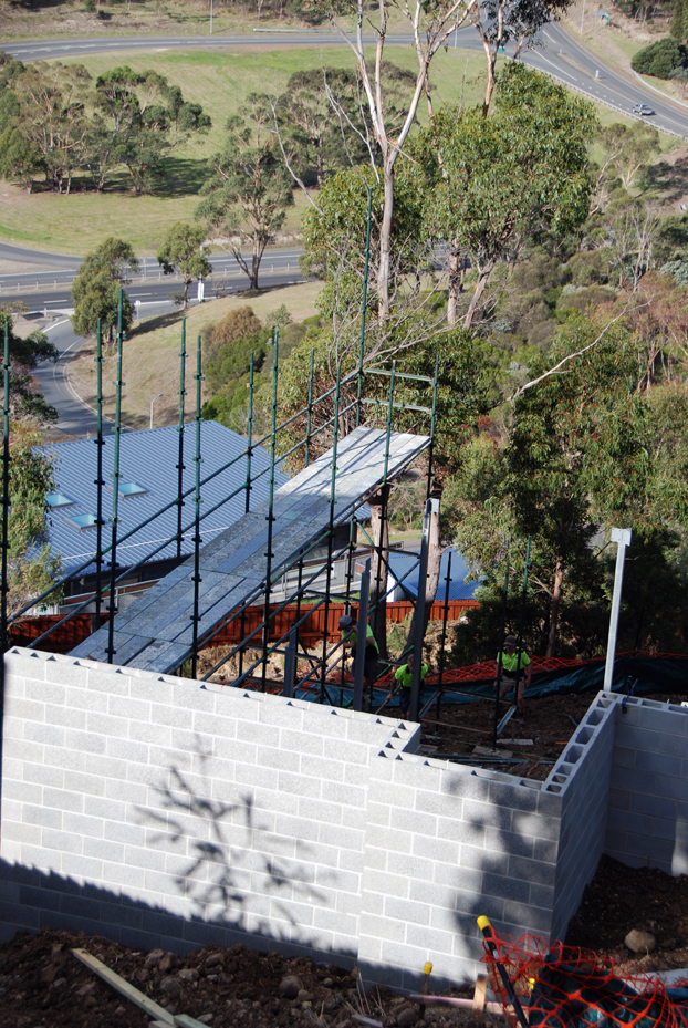 The project has arrived at a small fork in the road: to move rapidly ahead with scaffolding , which allows a start on the lower timber floor of the main house and the studio and their wall framing, or unusually, move to prepare the upper path’s formwork and get the initial concrete pour done.