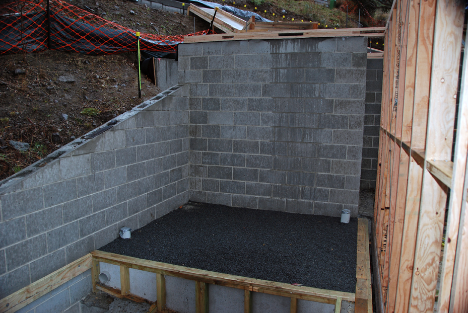 Having a concrete base supporting up to 4 tonnes of rainwater is a really good idea! But no new pour is required because, utilising the advantage of foresight, the excess concrete that wasn’t used in the initial pour was deposited in the area where the tank is to go. Ian the builder is well-practised in the art of calculating how much concrete to order (and pay for)! So there wasn’t much waste that day, in fact just enough to do this tank-support job down the track.